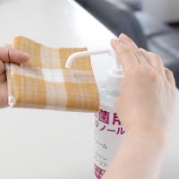 タオル・布にふきつけて、身の回りのモノを除菌するふき取りタイプのエタノールです。