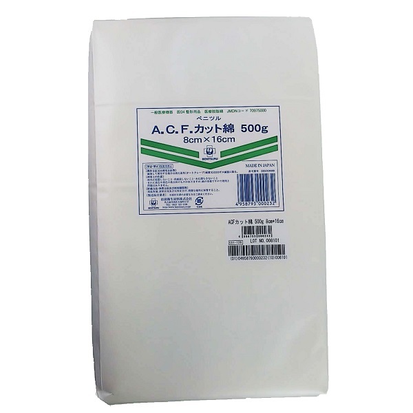 ベニツル A.C.F.カット綿 500g 8cm×16cm 医療脱脂綿 カットコットン 一般医療機器(クラスI)