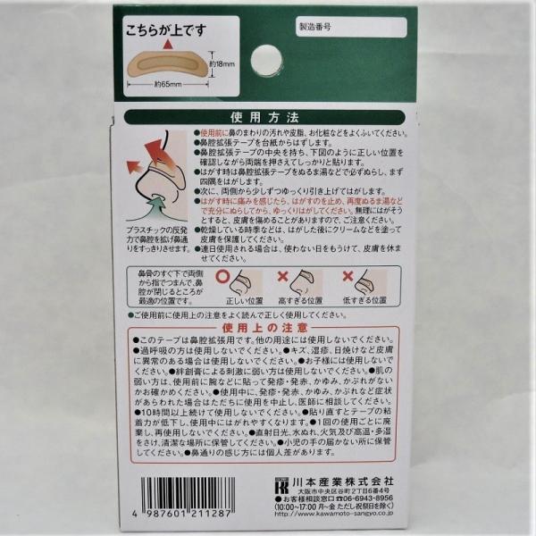 鼻腔拡張テープ レギュラー15枚入 カワモト 副鼻腔炎 花粉症 いびき予防 鼻づまりに