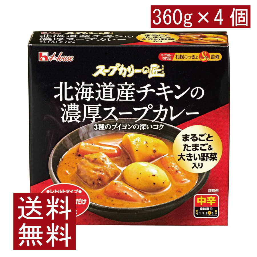 送料無料 ハウス スープカリーの匠 北海道産チキンの濃厚スープカレー 360g×4個