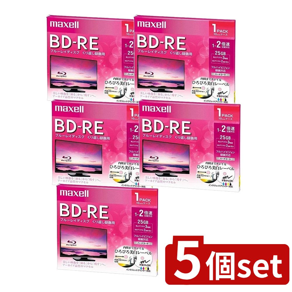 【5個セット】 maxell 録画用 BD-RE | マクセル BD-RE 録画用 25GB 書換え型 ブルーレイディスク インクジェットプリンター対応 ひろびろ美白レーベル 1-2倍速