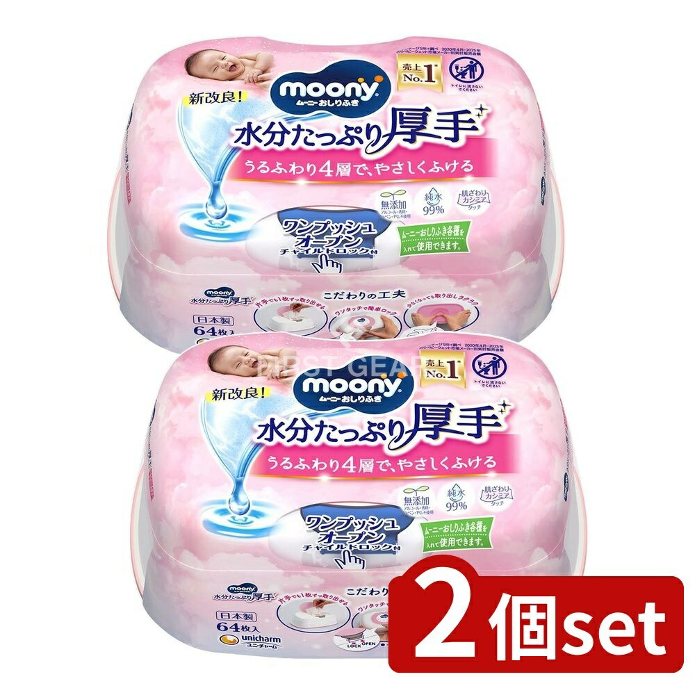 【2個セット】ユニ・チャーム ムーニーおしりふき水分たっぷり厚手本体 [単品内容量/64枚]