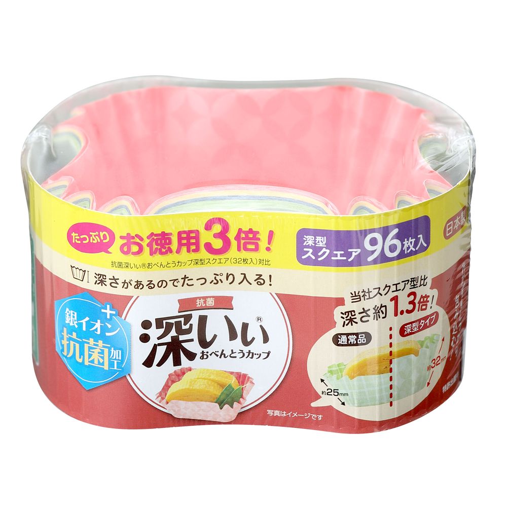 東洋アルミエコープロダクツ お徳用3倍抗菌深いぃおべんとうカップ深型スクエア4色 [単品内容量/96枚]