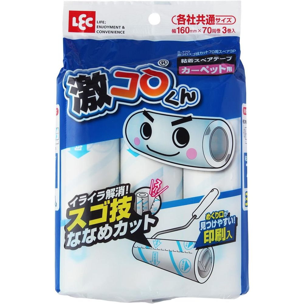[関連word] レック S-770激コロスゴ技カット70周スペア3P | 激コロくん スペア スゴ技ななめカット 70周 カーペット用 粘着クリーナー カーペットクリーナー 交換用 スペアテープ クリーナー 粘着ローラー 掃除用品 粘着スペアテープ 床 掃除 取替 取り替え ジュウタン コロコロ 激コロ スゴ技カット 3巻入 イライラ解消 テープ切れやすい めくり口わかりやすい 切れ端ライン 回転方向矢印 ミシン目付き 各社共通サイズ テープカッター交換用 見やすい印刷 清掃用品 粘着テープ 取り替え用カーペットテープ