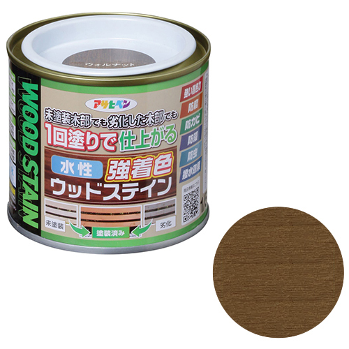 ◆アサヒペン 水性強着色ウッドステイン 1/5L ウォルナット●着色力が強く、1回塗りでキレイに仕上がります。