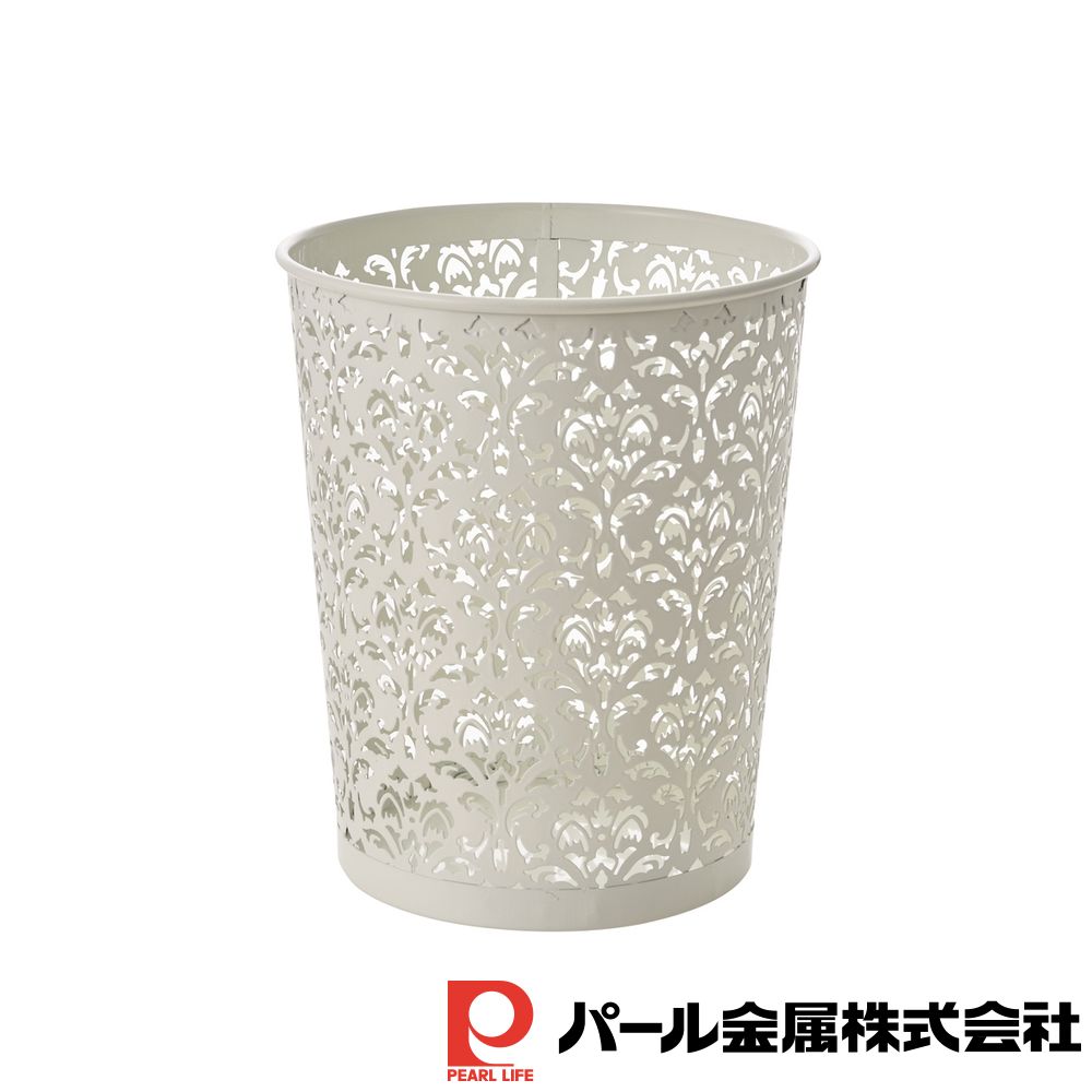 アイビー ホワイト パール金属 ごみ箱 バスケット 新生活 おしゃれ 収納 かわいい スチール レース