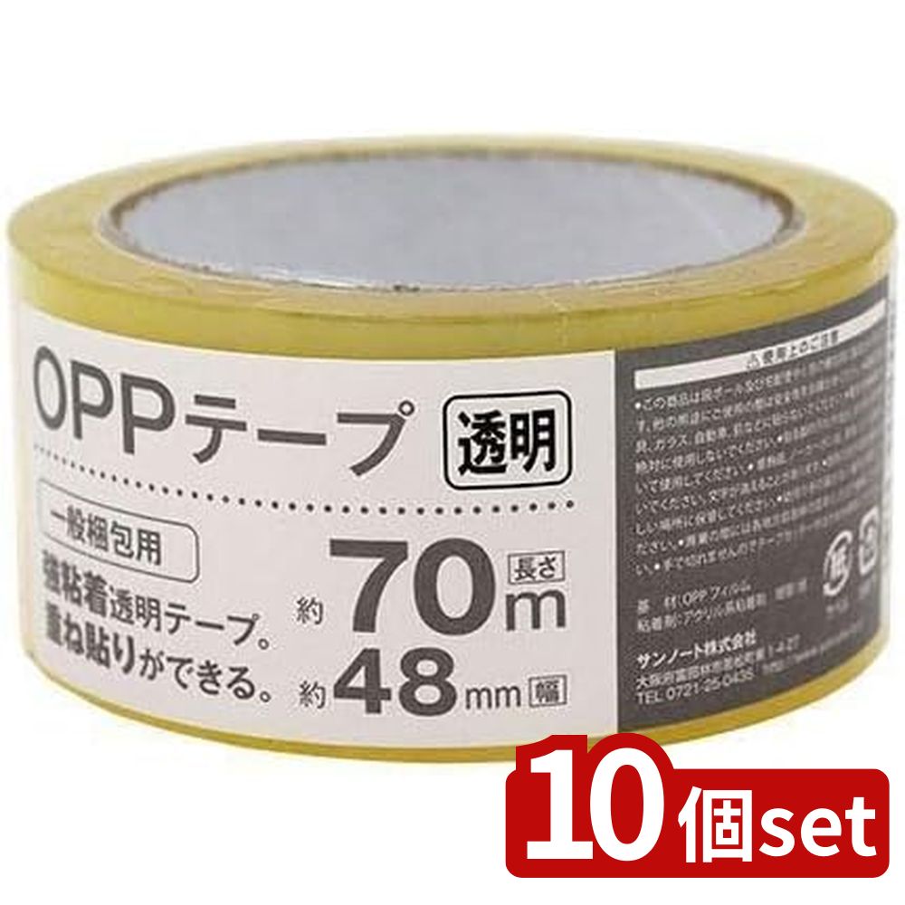 【10個セット】サンノート 梱包用OPPテープ 48mmx70m | OPPテープ 梱包テープ 透明テープ 強粘着テープ 一般梱包 OPPフィルム 粘着シール 宅急便テープ 小包テー