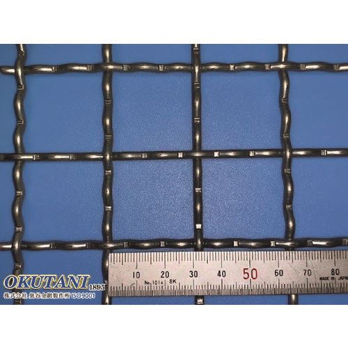 ●線に波形の屈曲を施し、縦・横線をはめ合わせて織られた金網です。