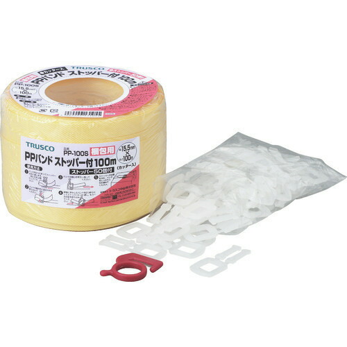 ■TRUSCO 手締用PPバンド ストッパー付 幅15.5mmX長さ100m巻 黄 PP100S(2277522)