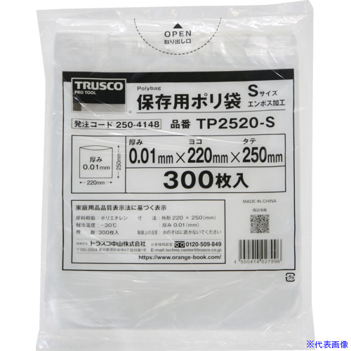 ■TRUSCO 保存用ポリ袋S 250×220 300枚入 TP2520S(2504148)