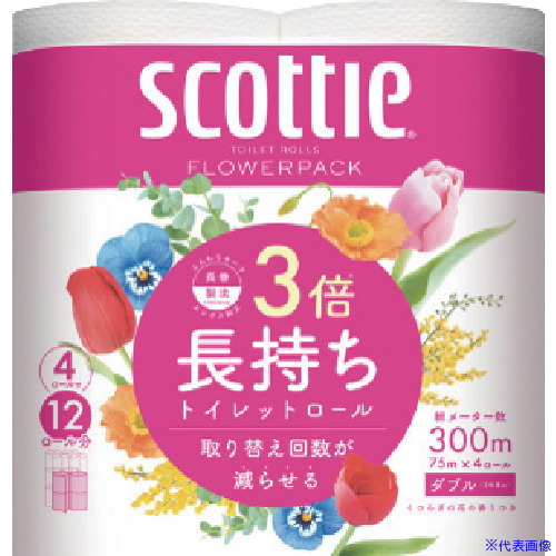 ■クレシア トイレットペーパー スコッティフラワーパック3倍長持ち4ロールダブル(22767/22775) 22775(2578623)