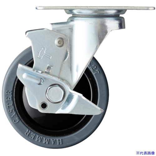 ■ハンマー 静音旋回式ゴム車輪(ナイロンホイール・ラジアルボールベアリング)100mm ストッパー付 413BBEFR100(3528189)