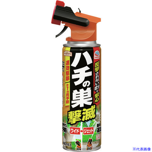 ●巣の退治と飛び回るハチの駆除はジェット噴射、巣作り予防はワイド噴射と切替可能なスプレータイプの駆除剤です。