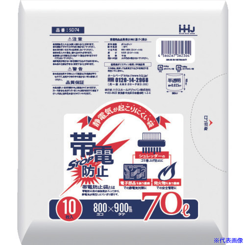 ■ハウスホールド 帯電防止袋70L白10枚0.035 SD74(5439533)