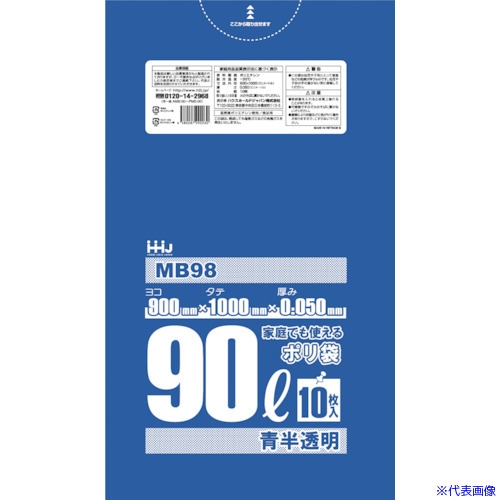 ■ハウスホールド ポリ袋 90L 青半透明 10枚 0.050 MB98(5549923)