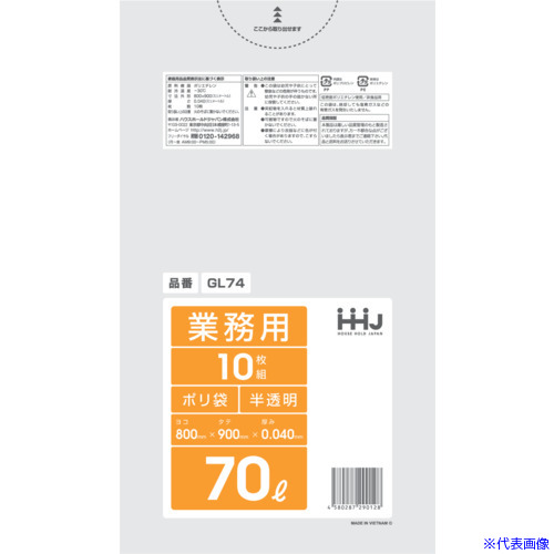 ■ハウスホールド ポリ袋 70L半透明 10枚 0.040 GL74(5551517)