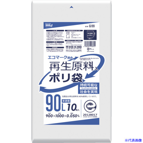 ■ハウスホールド 再生エコマーク袋 半透明 90L 10枚 GI99(5553149)
