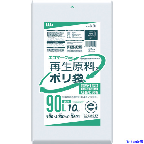 ■ハウスホールド 再生エコマーク袋 透明 90L 10枚 GI98(5569271)