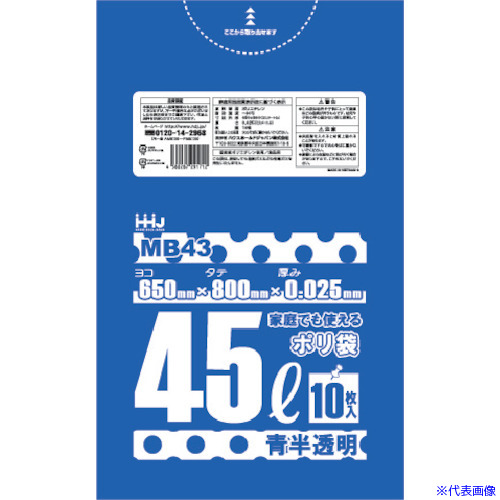 ■ハウスホールド ポリ袋 45L 青半透明 10枚 0.025 MB43(5569294)