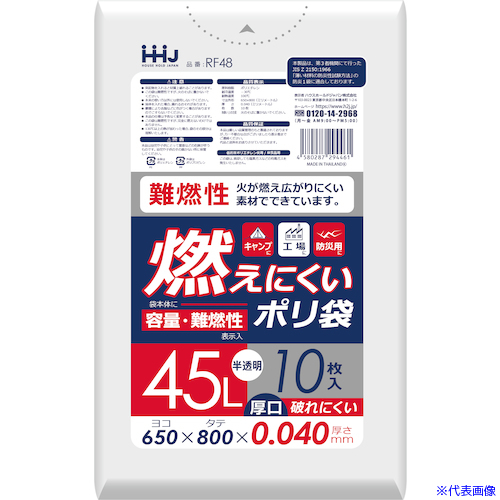 ■ハウスホールド 難燃性 45L 10枚 半透明 0.040 RF48(5570350)
