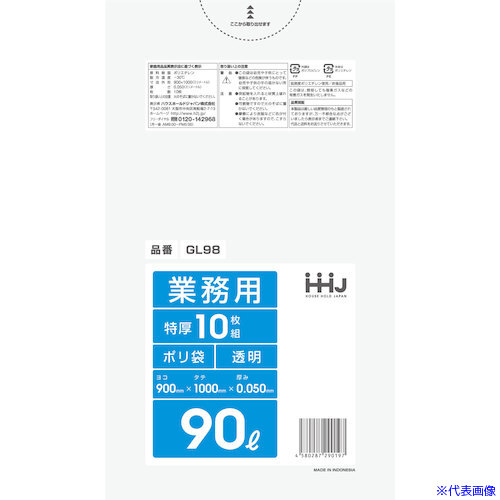 ■ハウスホールド ポリ袋 90L透明 10枚 0.050 GL98(5570440)