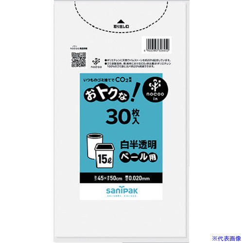 ■サニパック NOCOOオトクナ!白半透明15L30枚0.02MM CU19(6304207)
