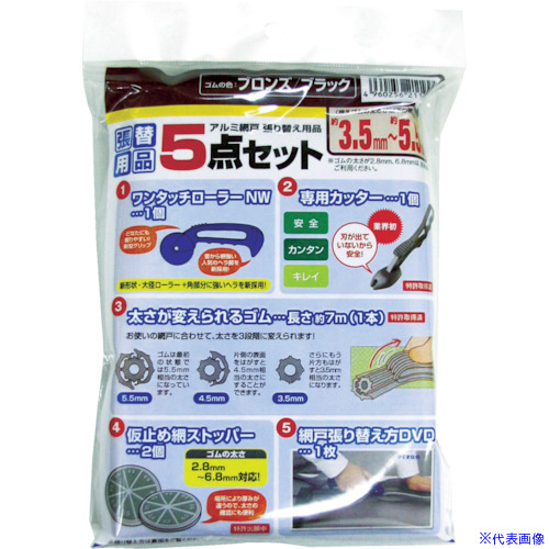 ●ワンタッチローラー・網戸専用カッター・太さが変えられるゴム・仮止めストッパー・網戸張り替え方DVDの5点セット品です。