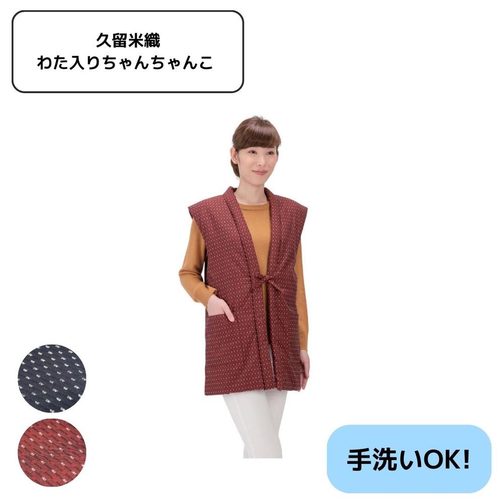 久留米織わた入りちゃんちゃんこ [紺/エンジ] | ルームウェア トップス 秋冬 防寒 中綿入り 綿100 日本製 男女兼用 両脇ポケット付き