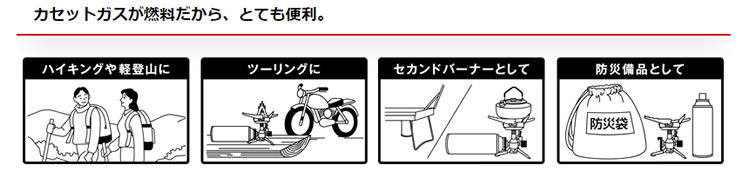 アウトドアバーナーの決定版! 燃料は手軽なカセットガス。