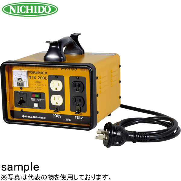 日動工業 降圧専用トランス 屋内型 NTB-200D 2KVA(200V⇒100V/115V) アースチェック機能付 <連続定格>安全ブレーカー付 トラパック