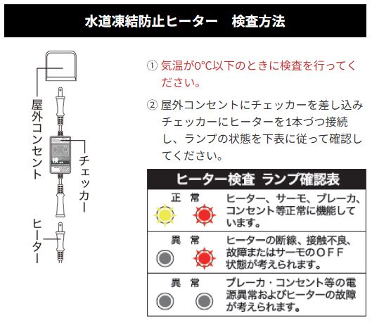 寒冷地では必需品の水道凍結防止ヒーターですが、外観からは正常かどうかの判別ができません。