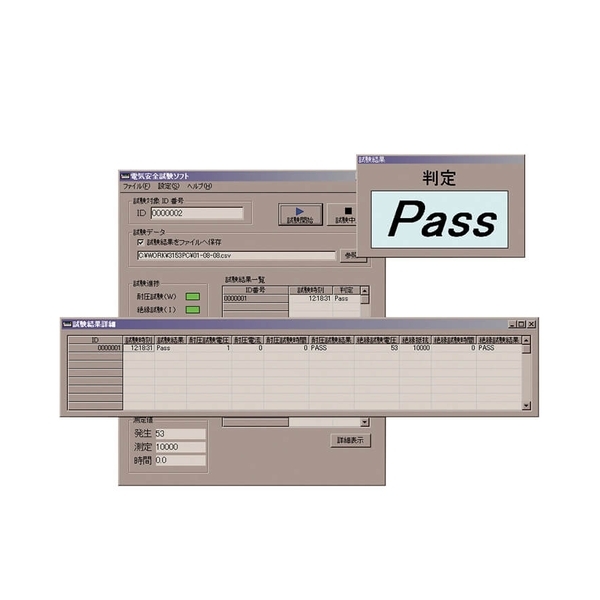 絶縁試験/耐圧試験/保護導通試験/漏れ電流試験/通電試験を制御・測定し、試験結果をテキストファイルにて記録できる専用アプリケーションソフトです。