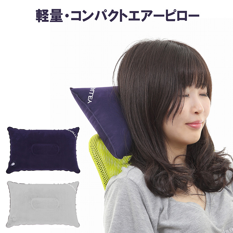 空気を入れて膨らませて使用する枕です。コンパクトで持ち運びにもとても便利。