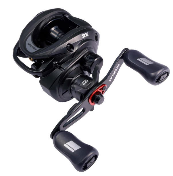 MAX5 SXは、ZENON、Revoと受け継がれてきたエルゴノミックデザインコンセプトを33mm径に継承したハイコストパフォーマンスモデルです。ピンロック式サイドプレートでサイドプレートの落下を防ぎます。PowerDisk™ドラグシステムを採用し、最大ドラグ力7kgを実現。90mmのアルミベントハンドルには、一体成型されたソフトタッチノブが採用され、快適なグリップとスムーズな巻き心地を実現します。
