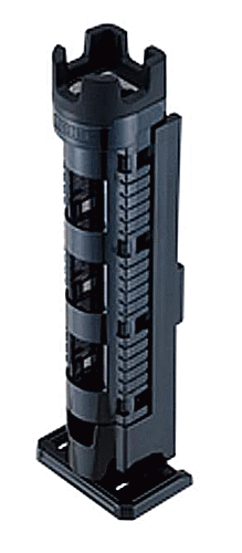 バケットマウスシリーズ・VW-2070・VW-2055・VS-7070・VS-7055・サイドポケットBM-120に装着可能なロッドスタンド。ネジを使うことなく装着でき、アタッチメントと本体をスライドロックで固定することで安心感を向上。フットレストも衝撃で外れにくいセパレート構造を採用の、進化したロッドスタンドです。