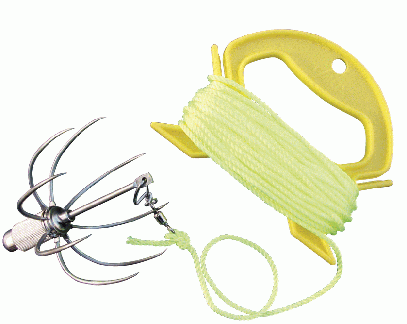 垂直系の足場の高い釣場で活躍する、落とし込みタイプのギャフです。 ギャフのシャフト部分にはケミカルライトも装着でき、アオリイカにも好適です。