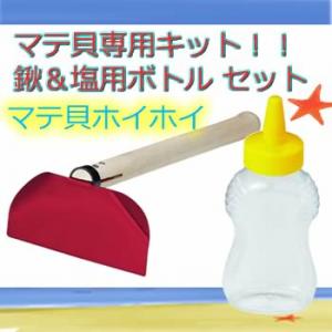 マテガイ 潮干狩りに マテ貝ホイホイ スチールL マテ貝専用キット クワ+塩用ボトルセット
