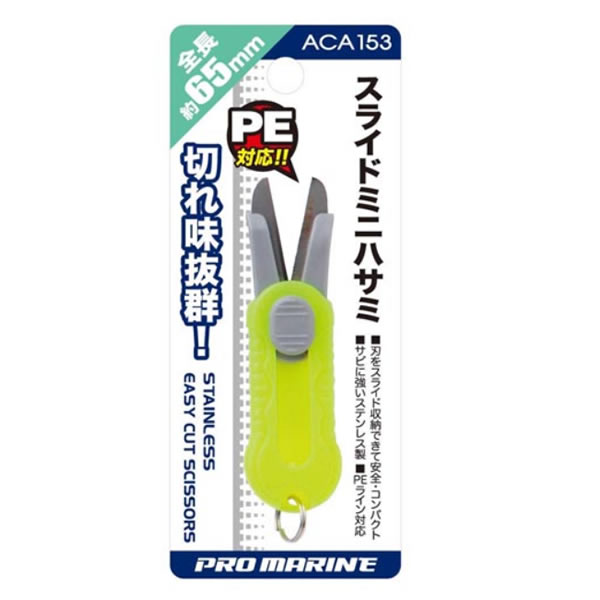 浜田商会 プロマリン スライドミニハサミ ACA153 65mm (フィッシング ハサミ) イエロー・オレンジ ゆうパケット可
