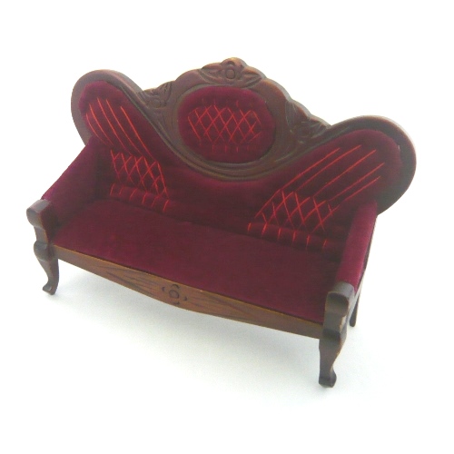 木製にベロア風生地が心地よい、本物のような作りでそのまま1/12スケールにした、ミニチュアドールハウスソファです。