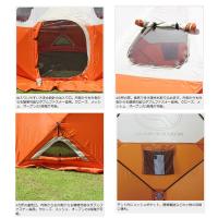 簡単に設置可能なテント。12箇所ある紐を引くだけの簡単設置。一番最初に引く天井の紐はオレンジ色、その他は黒で色分けされています。強度のあるグラスファイバーフレームをクロスさせた正方形が12面集まり、8角形のドーム型テントとなっています。そのため、どの方向から風がふいても安定感がある耐風性の高い構造を実現しました。8角形のため、デッドスペースが少なく広々とした空間が確保出来ます。出入りがラクな広めの出入り口設計。扉1カ所・窓4カ所・通気口3カ所のすべてに開け閉め可能なメッシュを装備。一酸化炭素中毒を防ぐだけでなく害虫の侵入を防ぐのでキャンプやグランピングなどでも活躍します。持ち歩きに便利な背負える収納バッグは大口の巾着タイプで出し入れも簡単。収納は12箇所を押込んで束ねるだけ。コンパクトなレギュラーサイズ、大人が立てるセミラージサイズ、みんなで広々ラージサイズ、釣行人数に合わせて選べる3サイズをラインナップ。荷物が多く、厳しい環境の多いワカサギ釣りに嬉しい、簡単設置。ワカサギ釣りをはじめ、キャンプやグランピングでも使えます。大人がテント内で立てるセミラージサイズ。