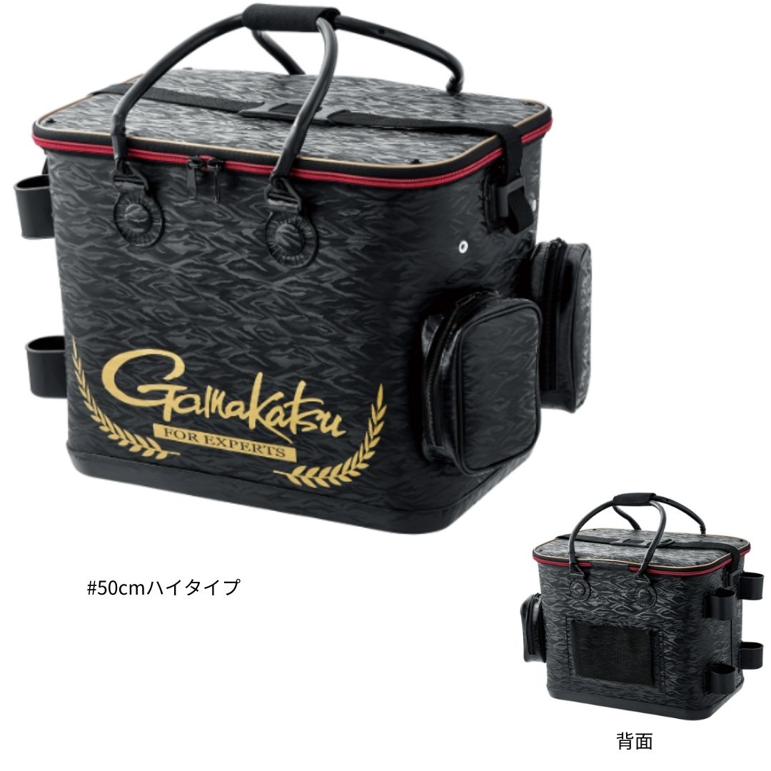 エアポンプが2個収納できるサイドポケットを装備。高い全高を生かし、バッカンを内部に入れた状態でも、上部に水汲みバケツなどの道具類や予備の集魚剤が仕舞えます。