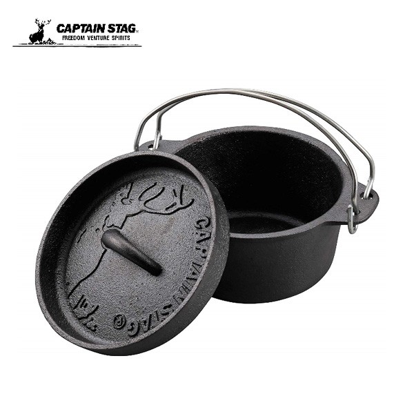 キャプテンスタッグ ダッチオーブン 22cm UG-3061 おき火、焚火で調理できる便利グッズ。本格的なアウトドアクッキングをしたい方はぜひ。