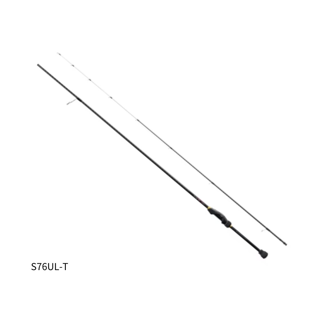 S76UL-Tは、ターゲット・ポイント・リグを問わないオールラウンダー。軽量ジグヘッドからスプリットショット、フロートリグ、小型プラグ、さらにはメタルジグまで幅広く対応します。適度にしなやかなチューブラー穂先[ソフチューブトップ]を搭載し、バイトに追従しながら的確にアタリを感知し、効率良くフッキングを決めにいくことが可能になります。