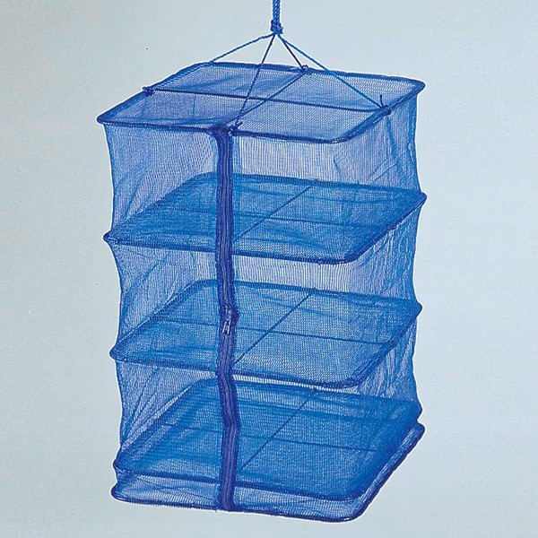 キャプテンスタッグ ドライバスケット ブルー M-8868 木の枝などに吊るして、洗った食器や野菜などを一気に自然乾燥が出来ます。燻製作りにも最適な 万能干しかご 。