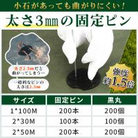 《2025年改良!優れた透水性》弊社の不織布タイプの防草シートはポリプロピレン、ポリエステルの長繊維を熱や化学的に溶着、接着、絡ませて製造された製品です。非常に引き裂き強度が高いので、切り込みを入れても裂けやほつれが発生しにくい特徴があります。130g/m2高密度不織布の厚手な素材で100gより破れにくく丈夫です。本商品には高い親水性と透水性の付与を実現するべく、親水化剤の塗布&含浸を行いました。透水性が上がることで水捌けが良く、雨天や灌漑時には数秒で土壌に染み込むため土壌侵食や地表の水溜りができにくくなります。通気性や透水性はそのままに、雑草が生えるのを抑える優れものです。《人工芝・砂利下約10年設置できる防草シート》不織布に特殊な加工を施していることで、経年劣化による破れやほつれが発生しにくく長期的にお使いいただける「高耐久の防草シート」です。簡単には引き裂けない強度がありながらも、設置場所に合わせて好きなサイズや形状に自由にカットして使えるところもポイント!長く設置できることで頻繁に取り換える手間が掛かりません。《UV剤入りで遮光性をキープ》防草シートは高密度かつ厚手の不織布でできているため、明るさを約95%もカット可能。日光を遮ることで雑草の成長に関わる光合成を抑制する役割があります。除草シートを敷くだけなので、除草剤を撒く必要がありません。さらに草木や花など大切で枯らしたくない植物はもちろん、人間・ペット・自然への影響が無いため気兼ねなくお使いいただけます。《様々な場所で使用可能》庭に人工芝や砂利を敷く際はもちろん、花壇・畑・農園・果樹園・空き地などへの使用もオススメ!複雑な工程が無く、DIYが苦手な方でも挑戦しやすいアイテムです。まずは雑草を取り除いて土をならしてから、凸凹が無いように地面を平らに整地します。続いて隙間なく防草シートを敷きます。シート同士を連結して敷く場合は繋ぎ目を最低10cmは重ねてください。最後に防草シートを付属のUピンや黒丸で固定したら設置完了です。【パッケージ詳細】除草シートの材質:高密度不織布 Uピン杭の材質:スチール製(亜鉛メッキ加工) 【防草シートサイズ】1m×50m 【セット内容】防草シート×1巻/Uピン杭×70本/黒丸×70個/手袋×1双 <おすすめの使用方法>防草シート用テープを用いることで、シートジョイント部・ピン杭部・カット部に防草シートテープを用いることで、耐久性が上がります。
