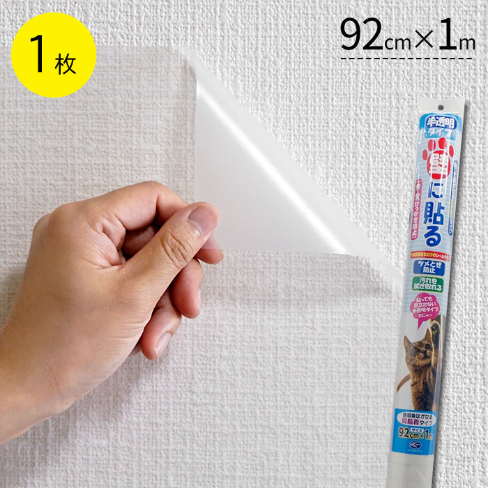 ペット壁保護シート はがせる弱粘着タイプ 半透明 92cm×1m 1枚 猫用 ペット 爪とぎ防止 壁 傷 保護