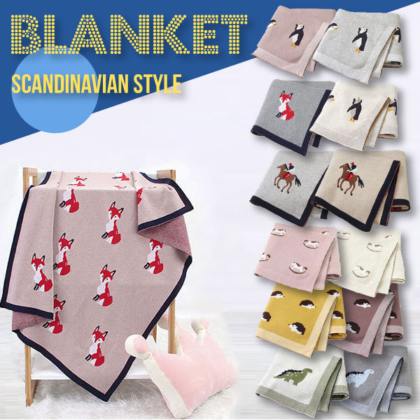 北欧 ブランケット ひざかけ コットン100% 100×80cm おくるみ 北欧風雑貨 防寒 動物 柄 昼寝 毛布 赤ちゃん 乳幼児 インテリア ふわふわ おしゃれ かわいい
