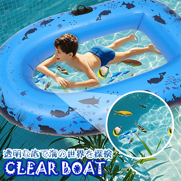 クリアボート ブルー 透明 底 クリア シースルーボート 海中探索 ビュー 浮き輪 水遊び プール 海 川遊び アウトドア 子供 ボート ラフティング アクア