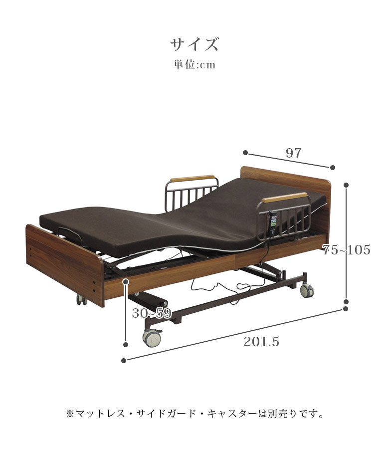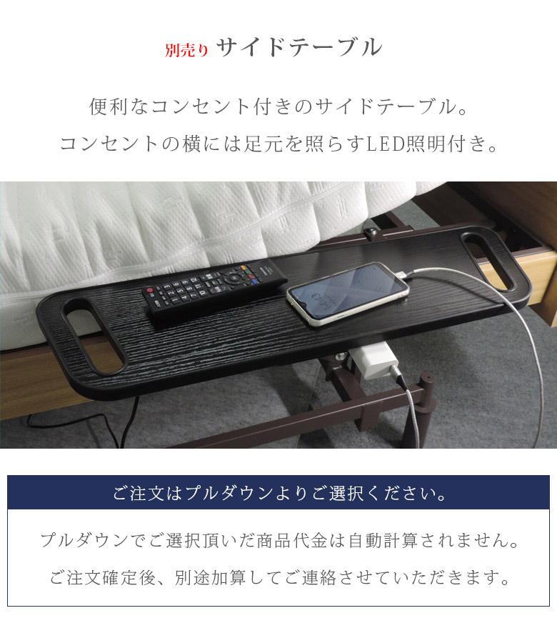 別売りでサイドガード・サイドテーブル・専用キャスターも購入可能です。