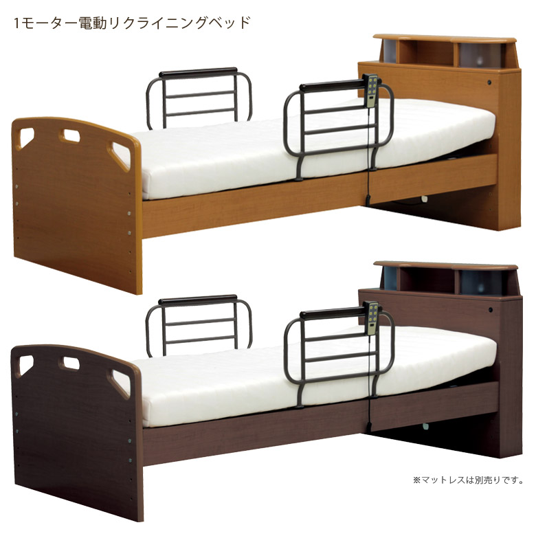 爆買 電動ベッド シングル 介護 介護ベッド 電動 高さ調整 1モーター 宮付き リクライニング 電動リクライニングベッド コンセント付き 手すり LEDライト